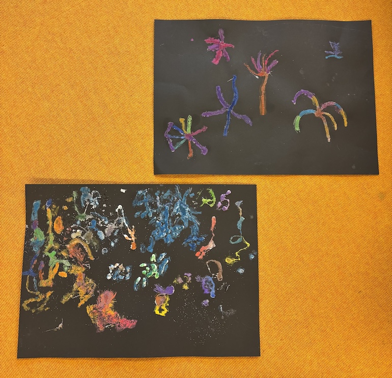 So sind in gemeinsamer Arbeit bunte und leuchtende Feuerwerksbilder entstanden. (FrKr)