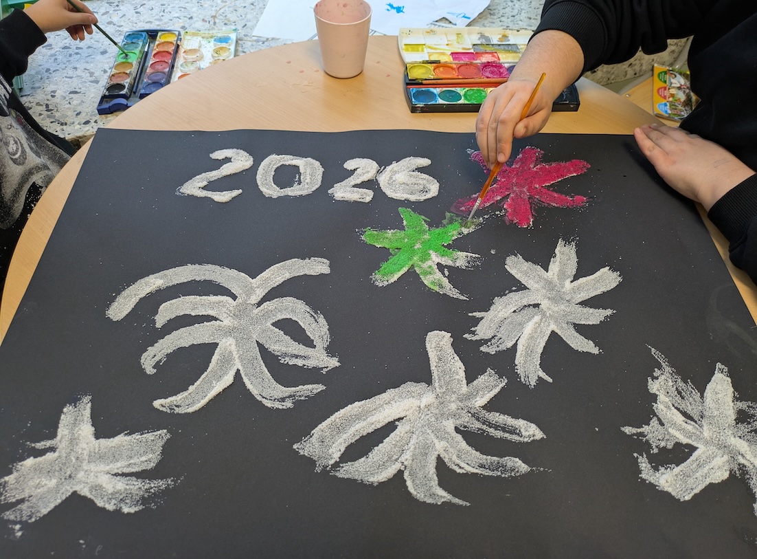 Mit viel Spaß und Kreativität entstanden in den letzten zwei Wochen leuchtende Silvesterbilder der Patenklassen 3c und 1c im Kunstunterricht.